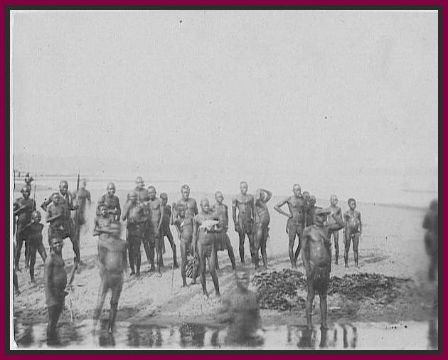 “In the village of Moinga, a Veadear chief who had made friends with the Arabs, I was surprised to run into an Arab settlement of about a thousand souls. Some of these Arabs were passable looking, but most of them were a scaly lot, and some of them were among the most villainous-looking specimens of Arab humanity I had ever seen. Had I known of this cobra’s den, I would have given it a wide berth. I was anything but comfortable, knowing that my throat might be cut at any moment, if they only had the courage to do it. I found a few hundred native women and children in their camp. They had been selected with good taste; the boys and girls were bright and intelligent looking, and the women young and well formed. They did not treat them badly, any more than a man treats an animal badly that he wishes to keep in good condition to sell at a large price. They wore no shackles, but had heavy anklets that impeded their locomotion and kept them from running away.”