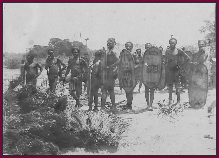 “On the Upper Kotto are three tribes I discovered. They are the Breeas, Lindas, and the Ngozzias. I met the Breeas when I touched the river. They are an interesting study. They possess to a high degree the child nature of the primitive African. Their voices are low and musical. They seldom get angry and do not cherish resentment. They are hunters and agriculturists, and have immense plantations covering thousands of acres. These plantations are not separated by fences, only a stake now and then shows the limits of certain properties. They are polygamists, having from one to five wives, five being a very common number. The Macoonzy, or chief, had seventy. They are impulsive, easily swayed by emotion, and could be kept laughing all the time by having American jokes translated into African vernacular. Their curiosity knows no bounds. The women gossip about their neighbors and they quarrel about their children. A young African maiden is just as particular about the style of her ornaments as any belle of fashion in civilization and finds fault with her rival for not wearing her abbreviated apparel in a becoming way, or for not having her Ngula (red paint) the proper tint.”